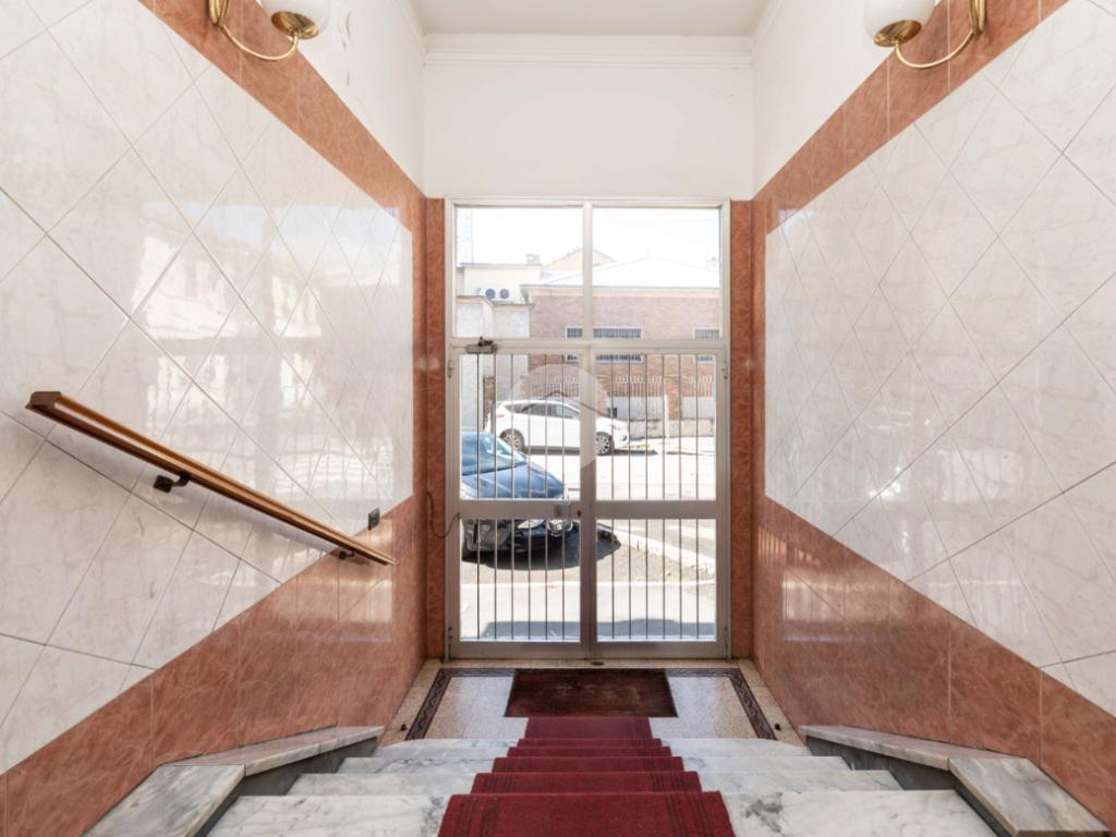 L’ingresso si apre su un comodo disimpegno che conduce all’elegante zona living luminosa, con cucina a vista e accesso diretto al balcone di pertinenza, ideale per momenti di relax all’aperto.