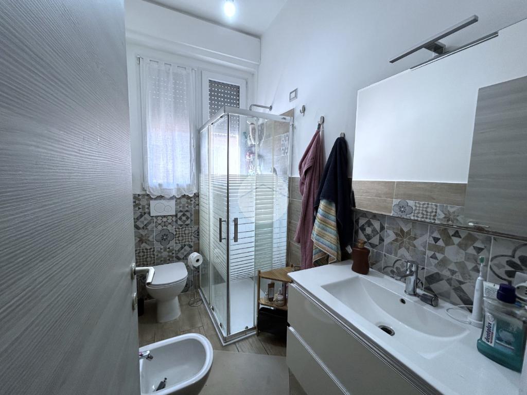 Proseguendo dal disimpegno si accede al corridoio, dove si trovano le altre due camere da letto già locate, e il bagno finestrato completo di box doccia e finiture moderne.