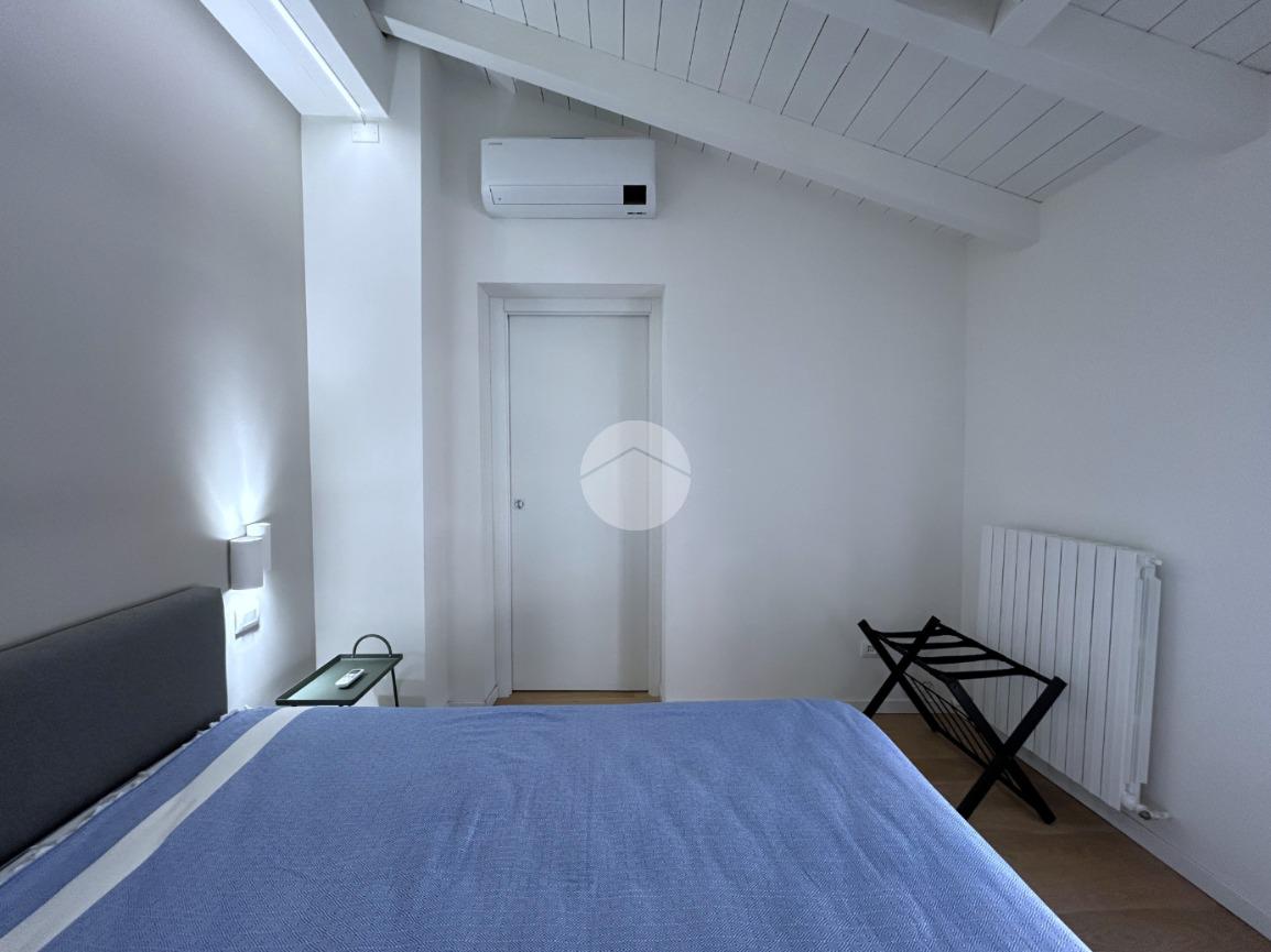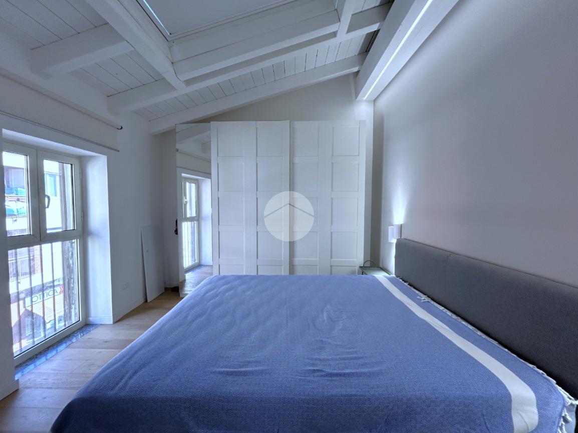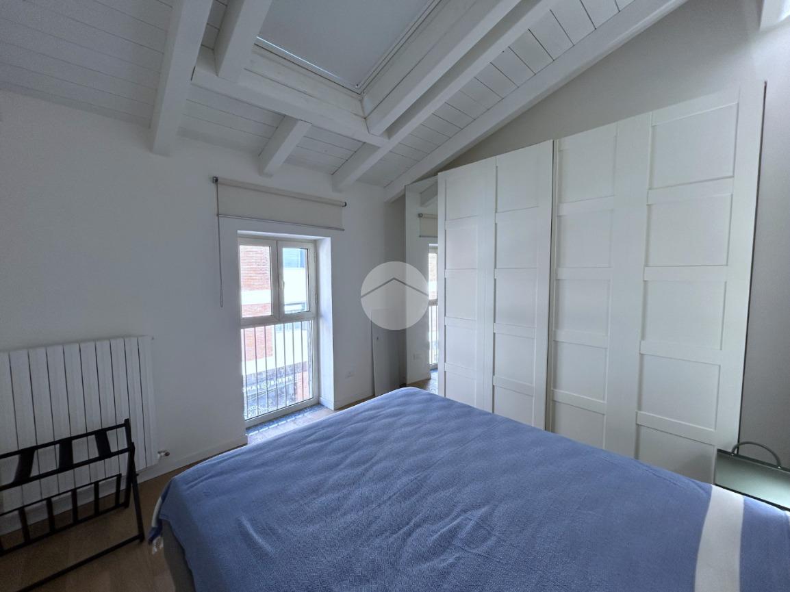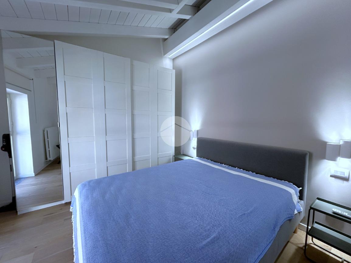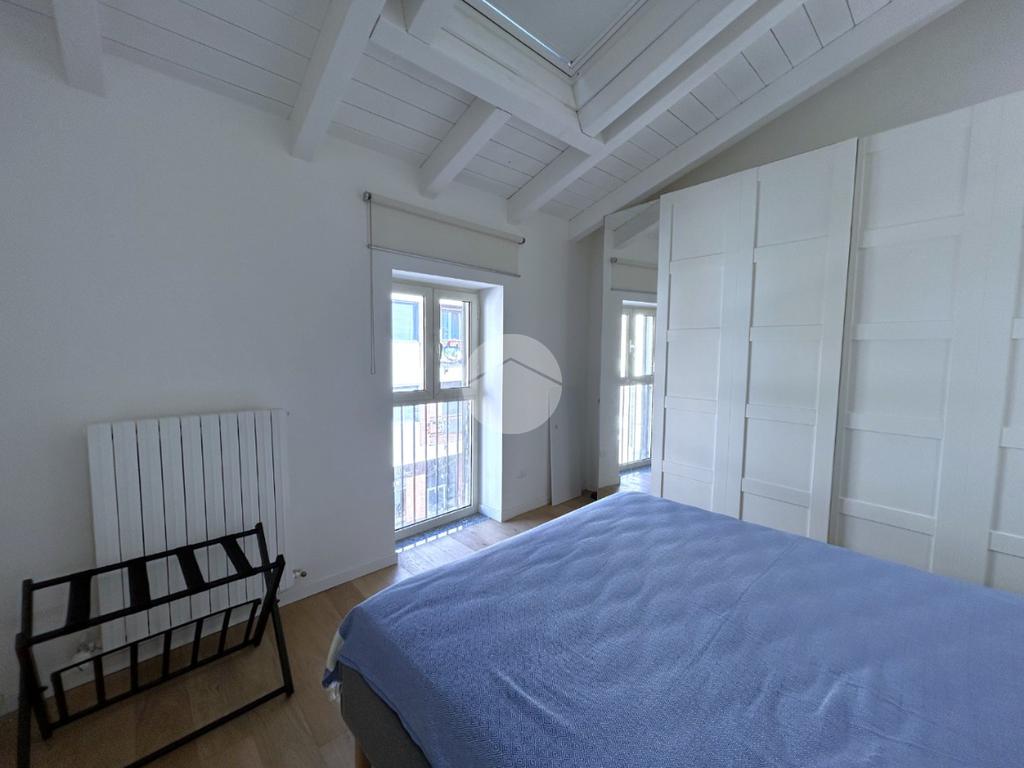 La zona notte è composta da una camera matrimoniale particolarmente luminosa, dotata di finestra e velux, mentre il bagno, finestrato, è completo di box doccia.