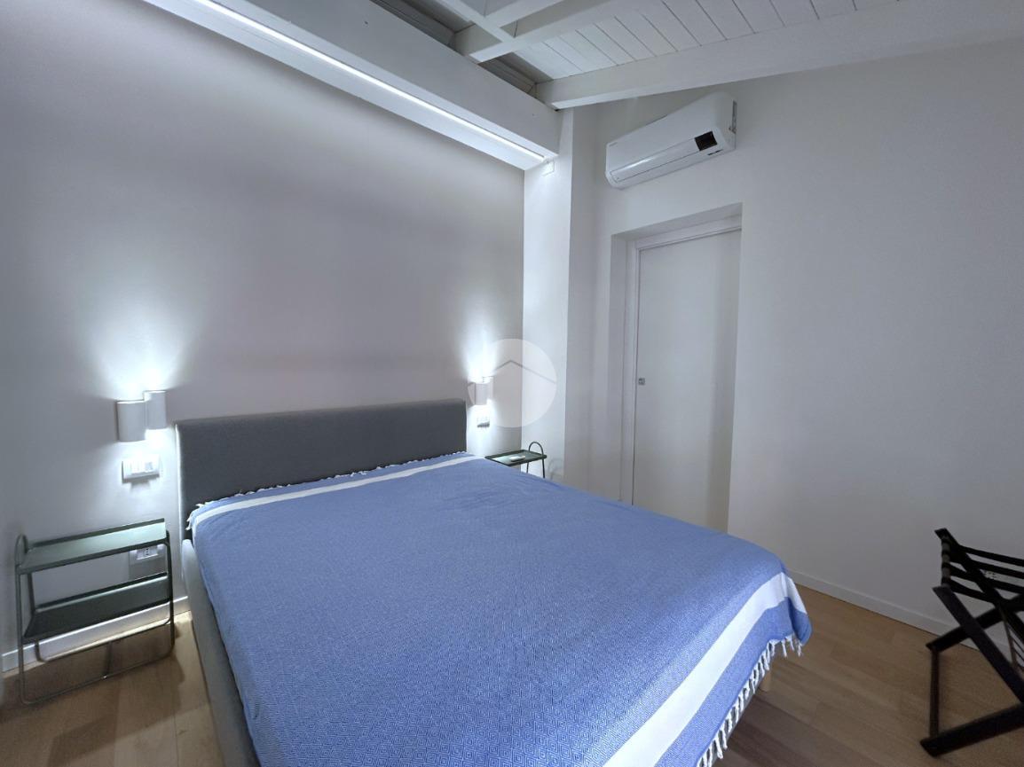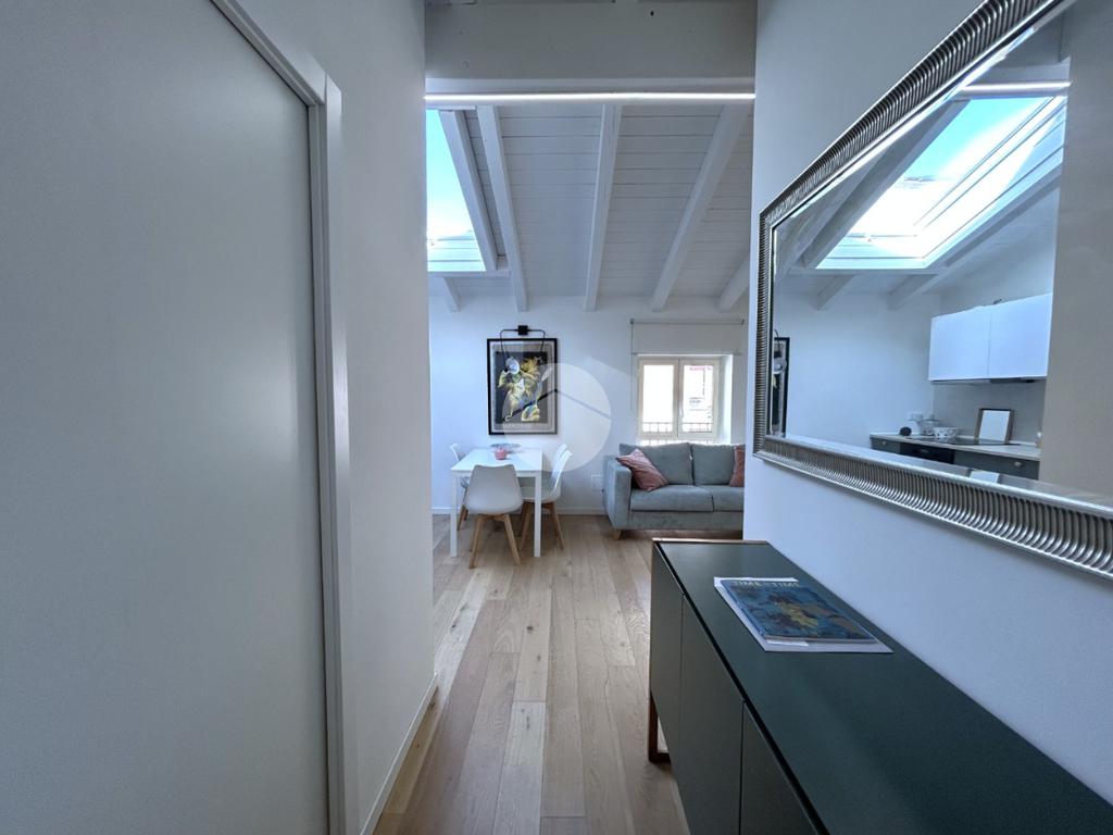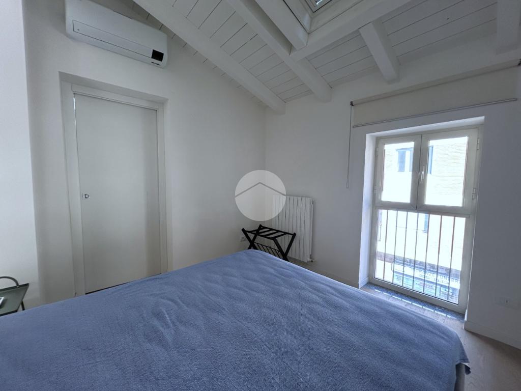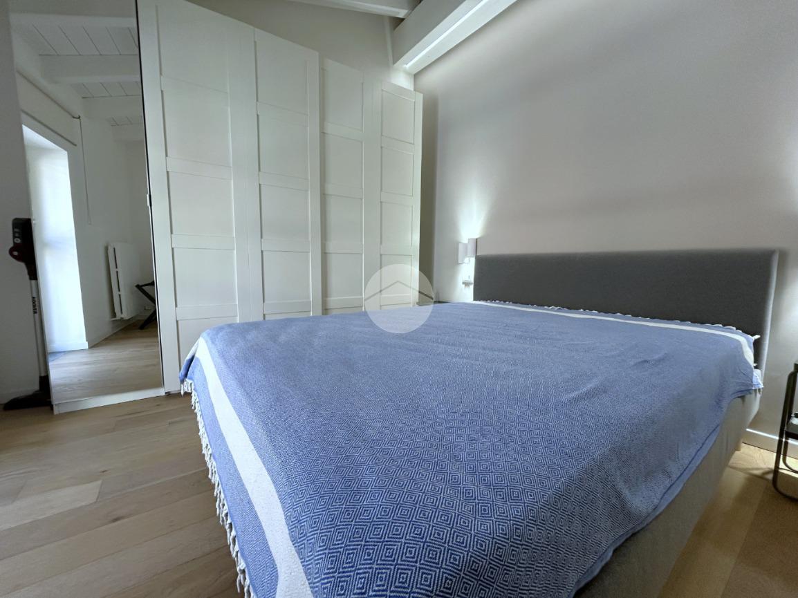 La zona notte è composta da una camera matrimoniale particolarmente luminosa, dotata di finestra e velux, mentre il bagno, finestrato, è completo di box doccia.