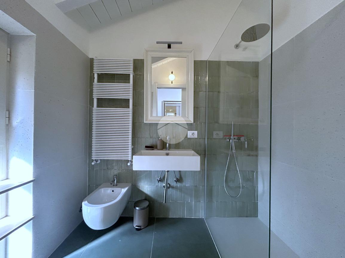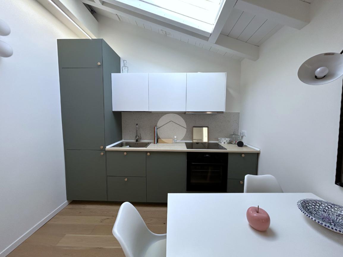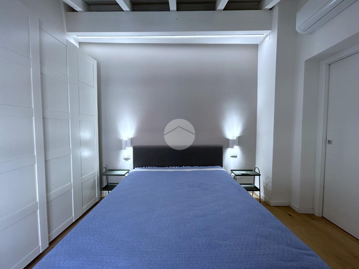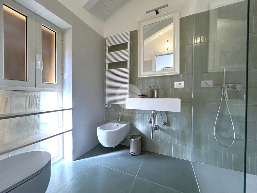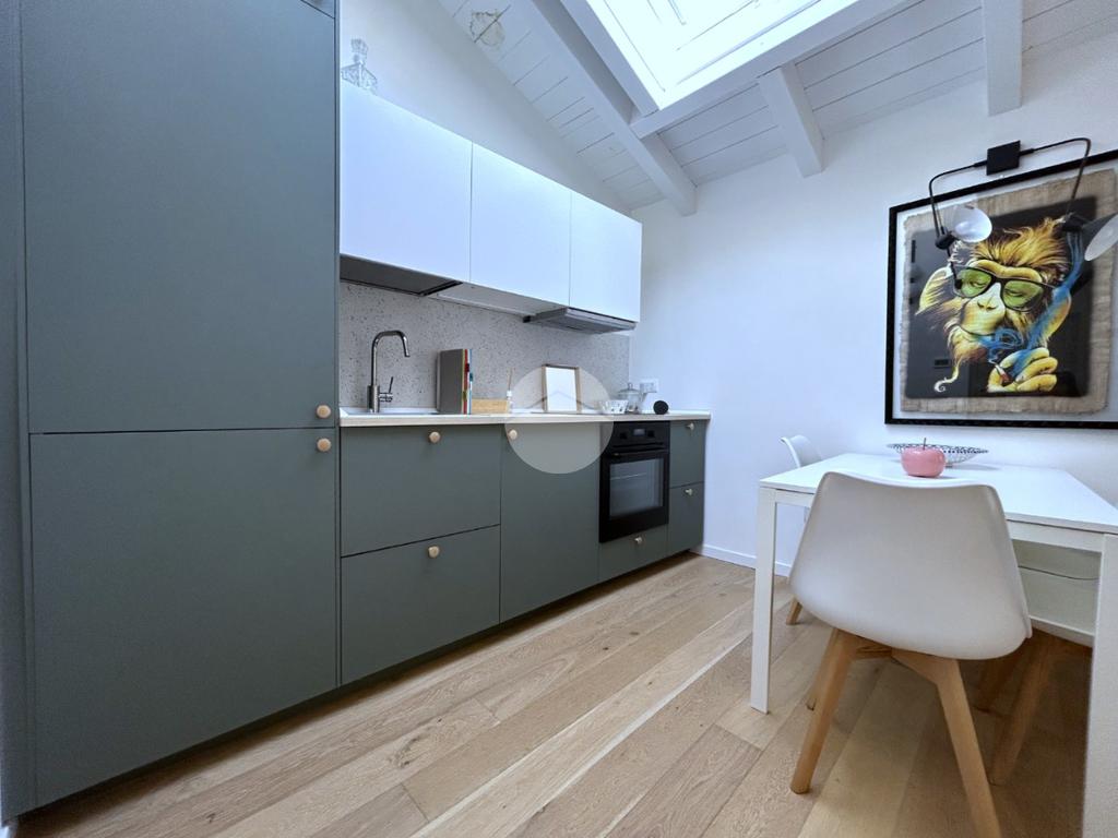 La zona notte è composta da una camera matrimoniale particolarmente luminosa, dotata di finestra e velux, mentre il bagno, finestrato, è completo di box doccia.