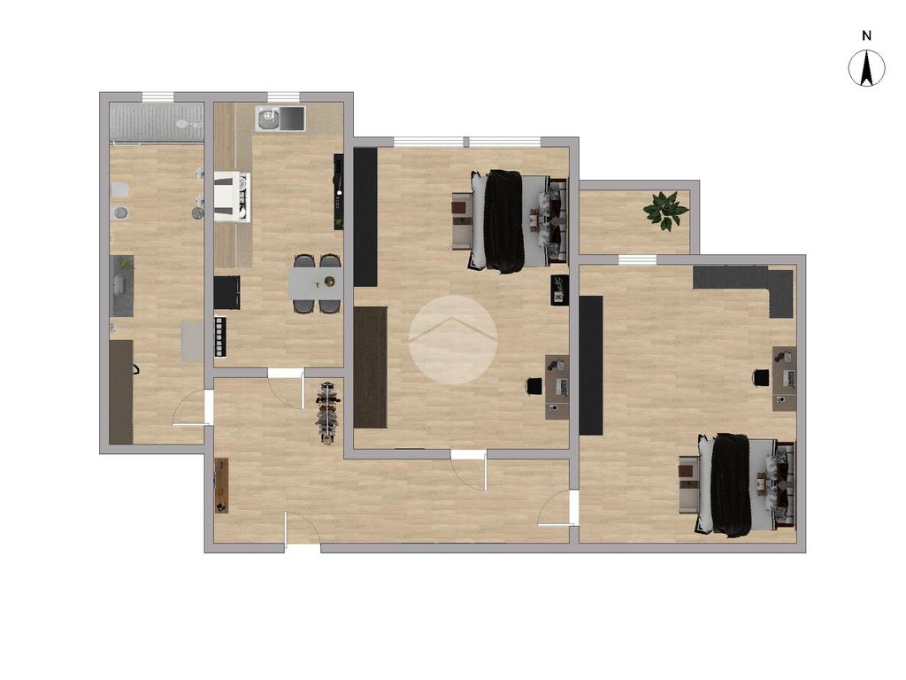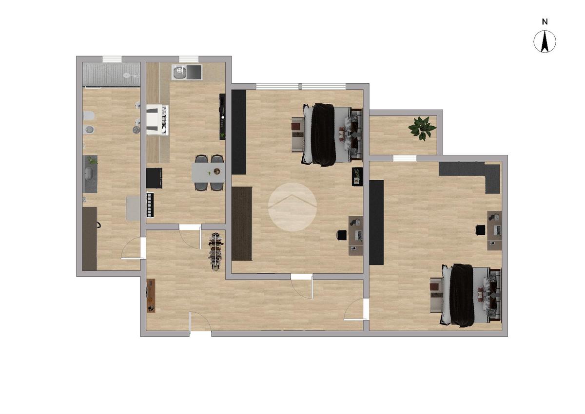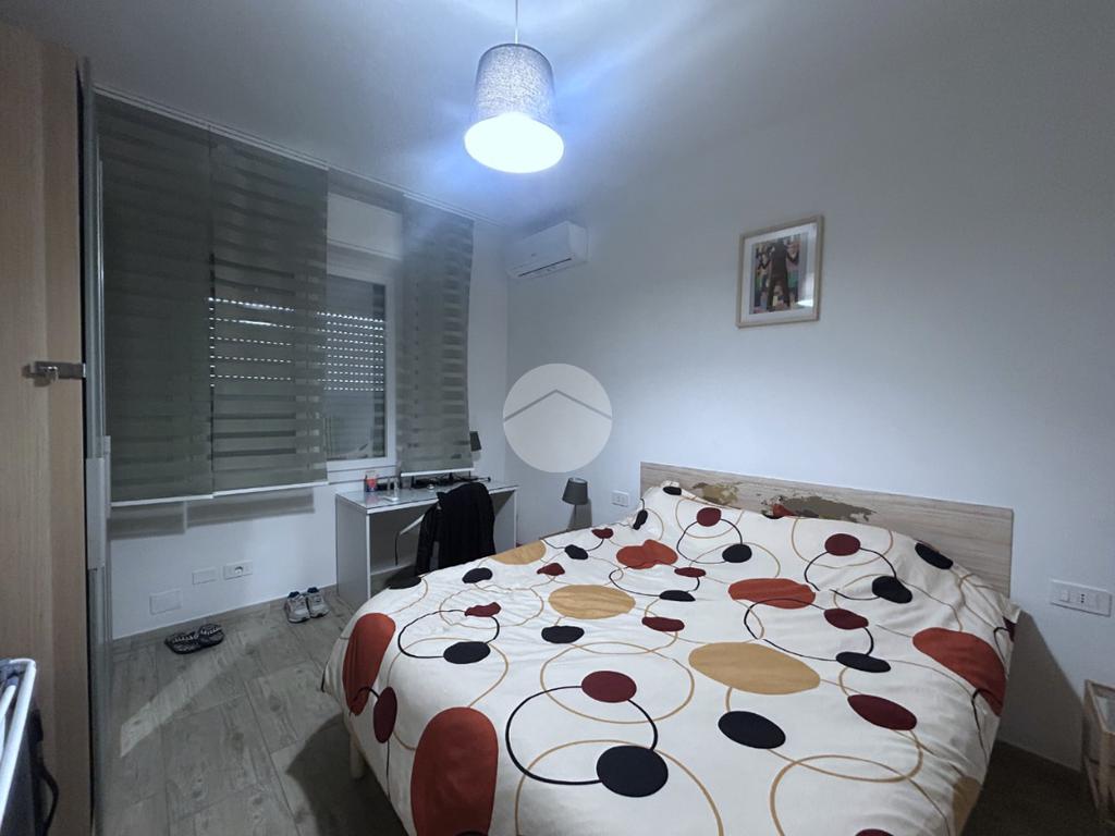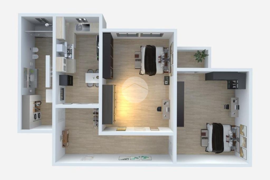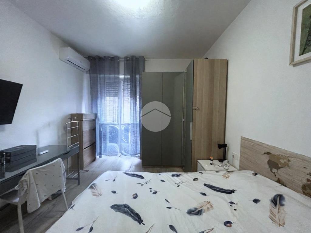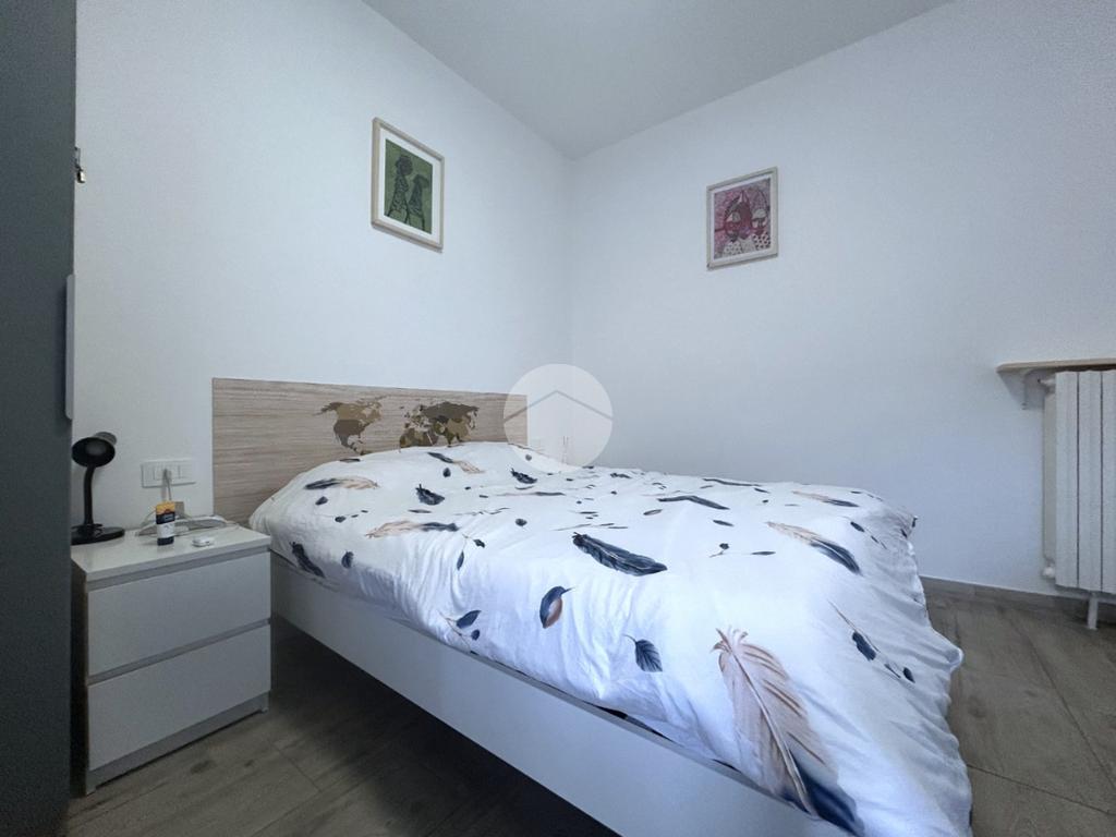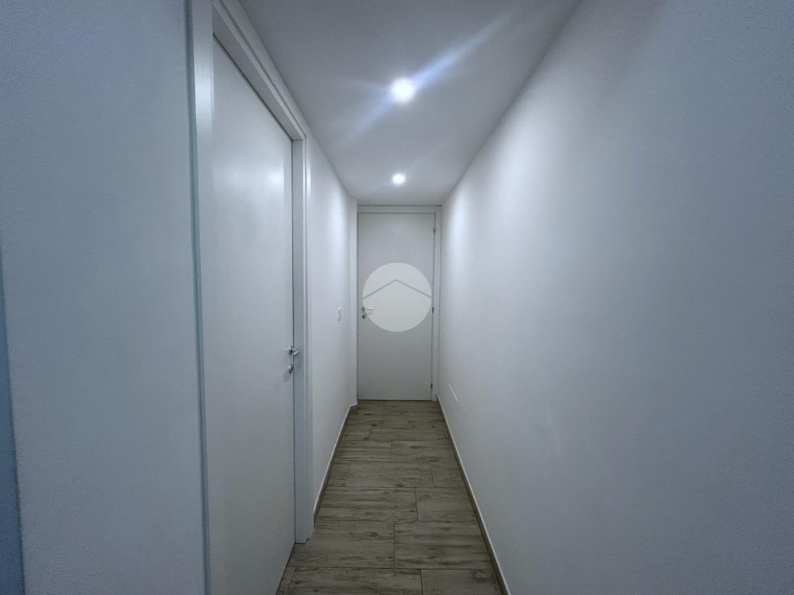 Il corridoio accompagna alla zona notte, composta da due ampie camere matrimoniali, di cui una finestrata e luminosa, mentre la seconda è valorizzata dalla presenza di un balcone di pertinenza che offre uno sfogo esterno riservato. Completa la proprietà un bagno finestrato dotato di box doccia, rifinito in stile moderno.